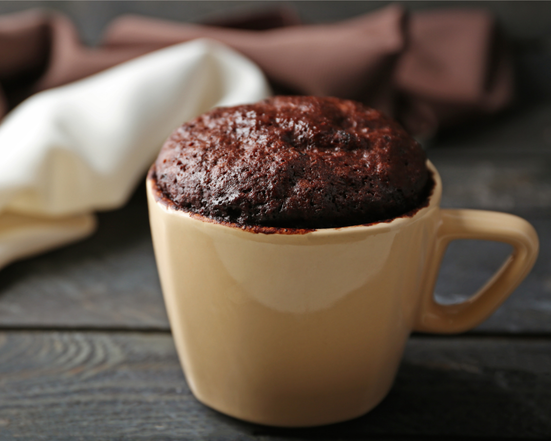 - Añade a una taza apta para microondas la harina de avena, el cacao y la levadura. Mezcla bien.